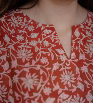 The Indian Ethnic Co Madder Cotton Loose Fit Printed Kurta