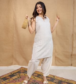 Embrace comfort with The Indian Ethnic Co Off White Solid Slub Cotton Afghan Pant. These stylish pants are crafted from soft slub cotton, offering a relaxed fit with a versatile off-white hue. Perfect for casual or festive looks, pair them with kurtas or tops for a chic ensemble. The breathable fabric ensures all-day comfort. Celebrate traditional craftsmanship with these versatile pants, designed for effortless style and timeless appeal.