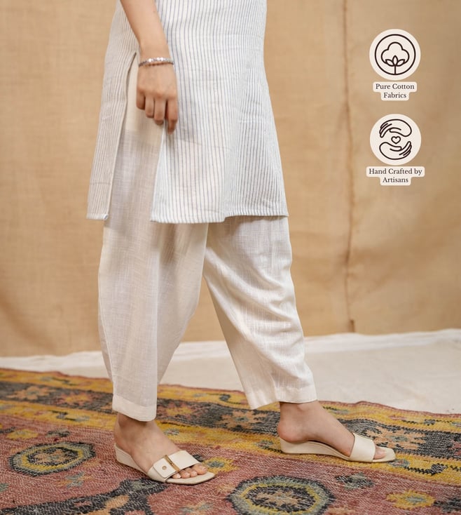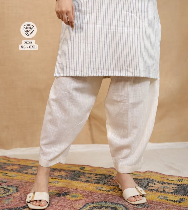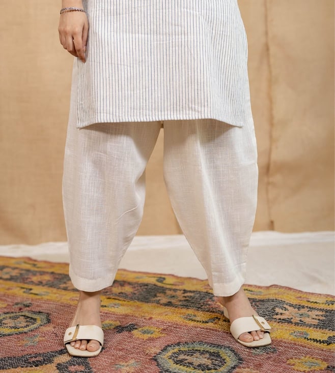 The Indian Ethnic Co Off White Solid Slub Cotton Afghan Pant
