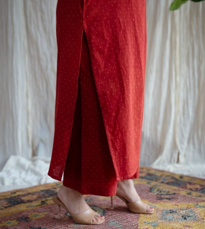 The Indian Ethnic Co Red Straight Ajrakh Handblock Printed Cotton Kurta