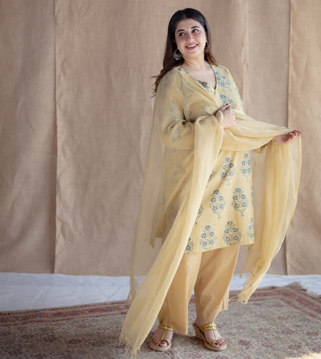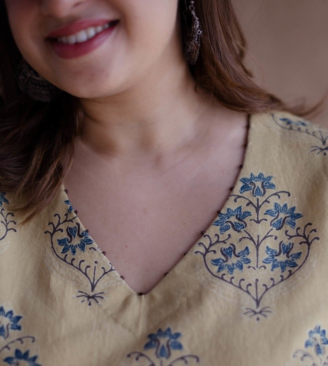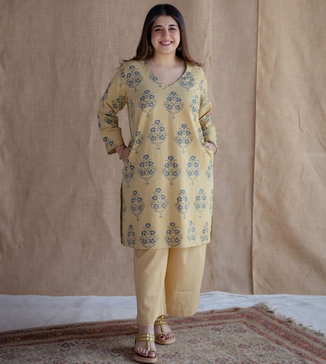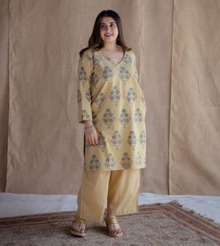 Elevate Your Style With The Designed For Women, The Indian Ethnic Co Yellow Cotton Straight Fit Ajrakh Handblock Printed Kurta This Vibrant Piece Combines Comfort And Elegance. Disclaimer: All Other Items In The Image Are Only For Display Purposes And Will Not Be A Part Of The Delivery Content. Product Colour May Slightly Vary Due To Photographic Lighting Sources. Country Of Origin - India.