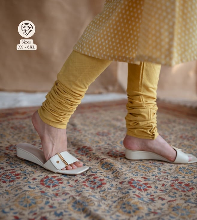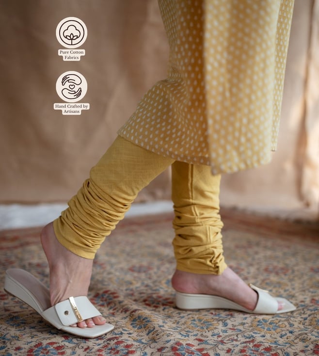 Conquer the zenith of refined charm with this churidar. Tailored to sartorial perfection from slub cotton, it assures a soft and soothing touch against the skin. Disclaimer: All other items in the image are only for display purposes and will not be a part of the delivery content. Product colour may slightly vary due to photographic lighting sources. Country of Origin - India.