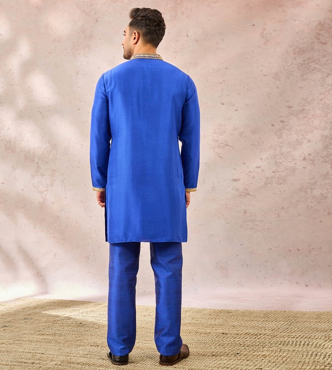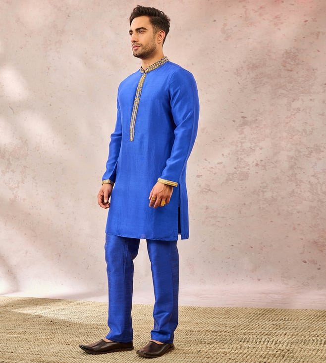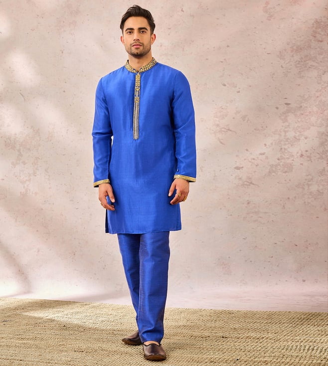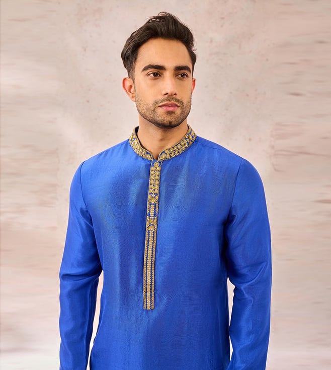The Neel Bahar kurta showcases delicate embroidery and intricate detailing, elevating its elegant design. With its rich craftsmanship, this kurta exudes a refined yet vibrant charm, making it a perfect choice for any festive occasion. A timeless piece that blends tradition with modern sophistication