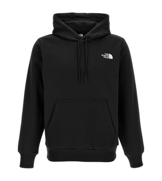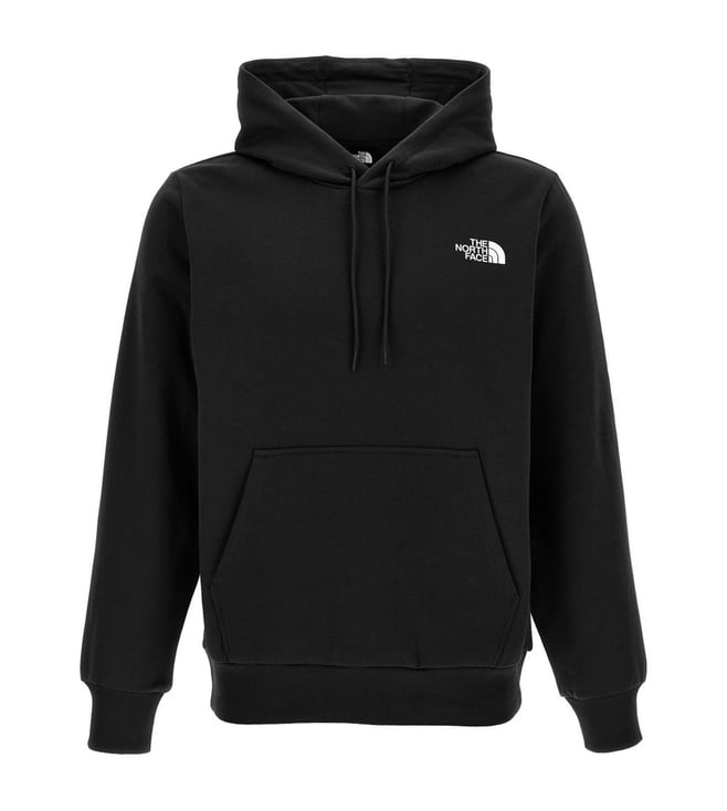 Elevate your style with the North Face Black Hoodie. Simple' cotton blend hoodie with front and back print, kangaroo pocket, long cuffed sleeves. True to size fit.
