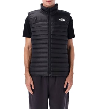 Stand collar, sleeveless, logo detailed, front zip closure, pockets.