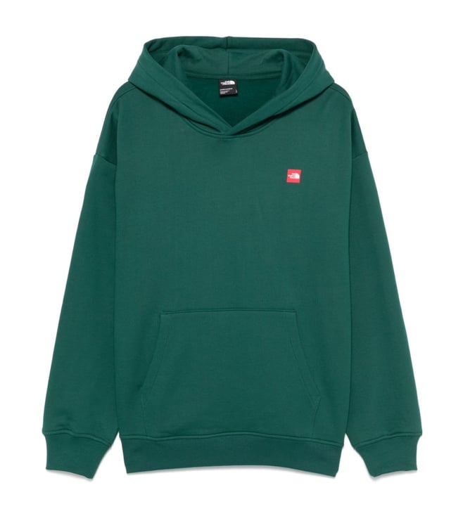 Elevate your style with the North Face Green Logo Print Hoodie. Front pouch pocket logo patch at the chest ribbed cuffs and hem attached hood pullover.