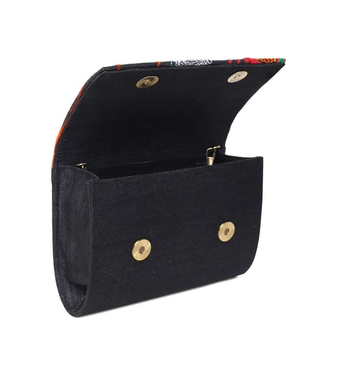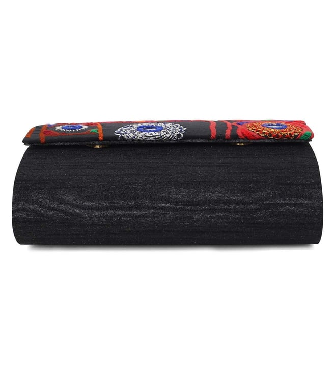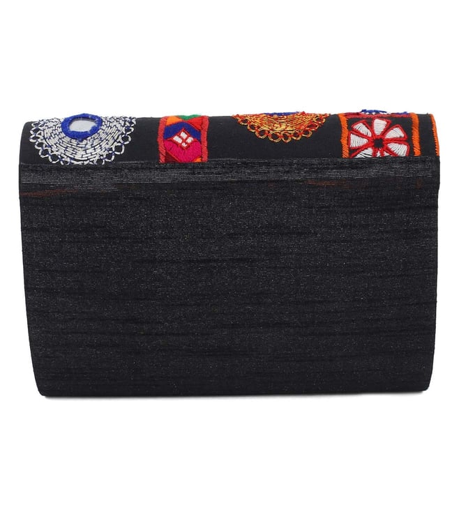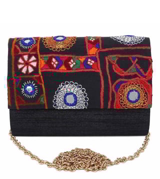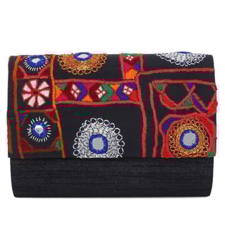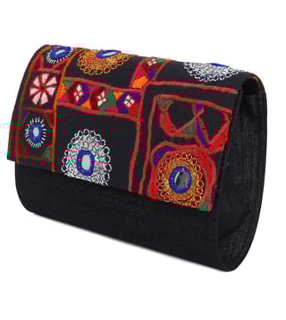 Rev up your accessory collection with this clutch. It comes with boho work mirrorwork flap. It has been crafted with care using silk for durability. Disclaimer: Product colour may slightly vary due to photographic lighting sources. Country Of Origin - India.
