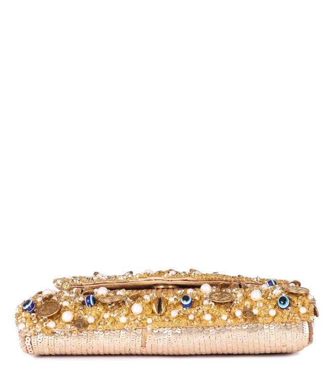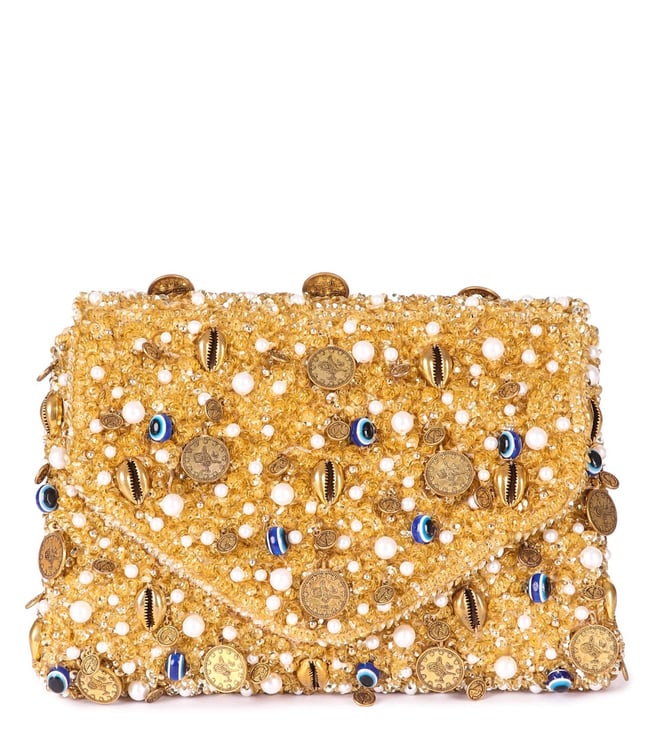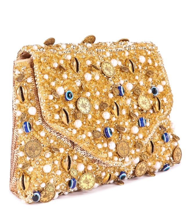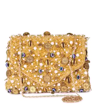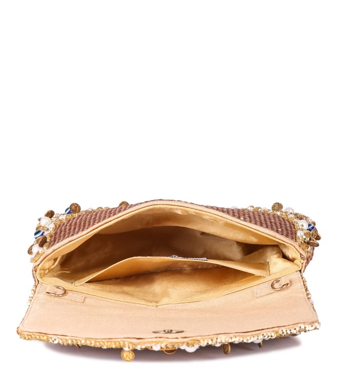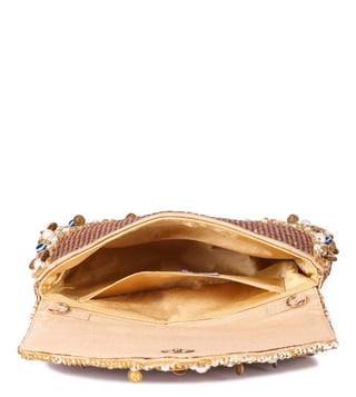 Add a hint of style to your look with this clutch from The Purple Sack. This clutch comes with a detachable chain. This hand-embroidered accessory is made using raw silk. Disclaimer: Product colour may slightly vary due to photographic lighting sources. Country Of Origin - India.