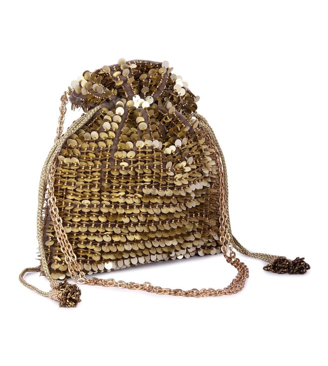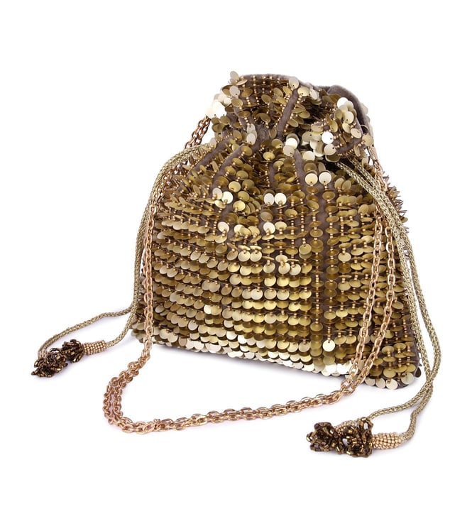 The Purple Sack Golden Ickle Tickle Hand Embroidered Potli