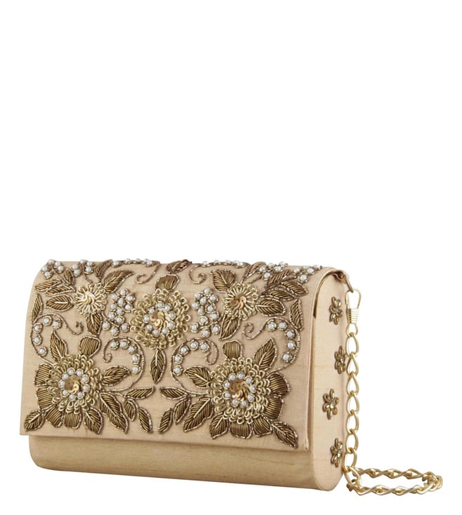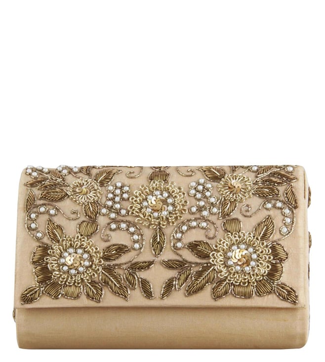 This classic ethnic clutch is made using various hand embroidered techniques and is a must-have. It has been tailored to sartorial perfection from raw silk. Country of Origin - India. Disclaimer: Product colour may slightly vary due to photographic lighting sources.