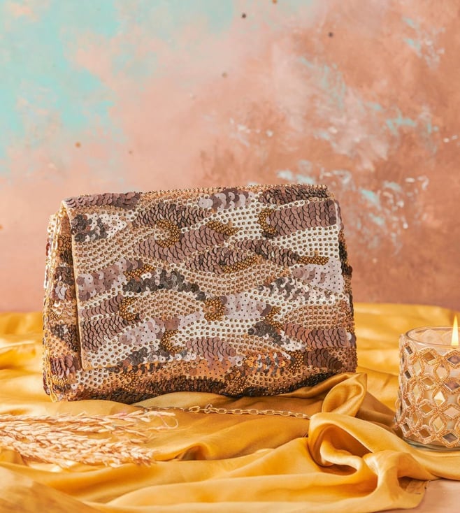 The Purple Sack Rose Gold Eelina Zing Hand Embroidered Clutch