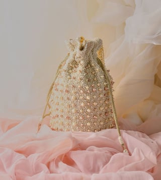 The metallic sling chain adds a chic finish, making it a must-have fashion accessory for every festive or party occasion. A premium hand-embroidered bag that reflects skilled craftsmanship. The blend of sequins, threadwork, and embellishments ensures a dazzling look that complements both ethnic and modern attire. This bag¿s one-of-a-kind artistry adds glam to your outfit instantly. Perfect for gifting or personal use, it serves as a style statement for weddings, cocktail parties, and special events.