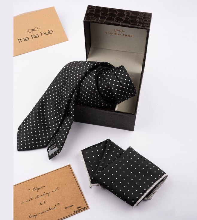 The Tie Hub presents the perfect combination of sophistication and style with a black polka necktie and pocket square set. Crafted from high quality microfiber, this tie exudes classic appeal. The lapel-worthy set is perfect for formal occasions and elevates any look for men.Disclaimer: All other items in the image are only for display purposes and will not be a part of the delivery content. Product colour may slightly vary due to photographic lighting sources. Country of Origin - India.