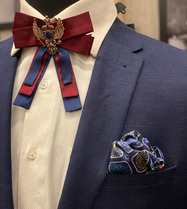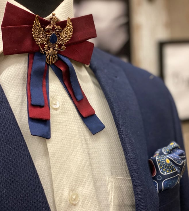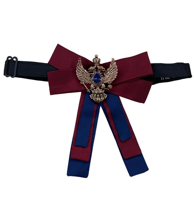 The Tie Hub Burgundy and Blue Bolo Bow Tie with Brooch