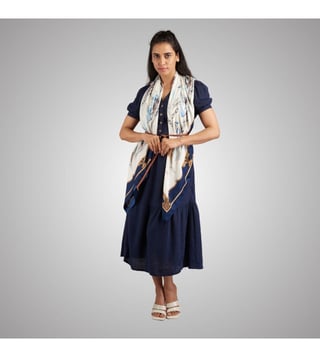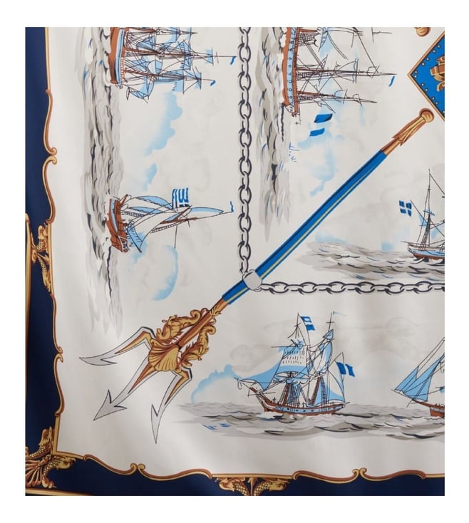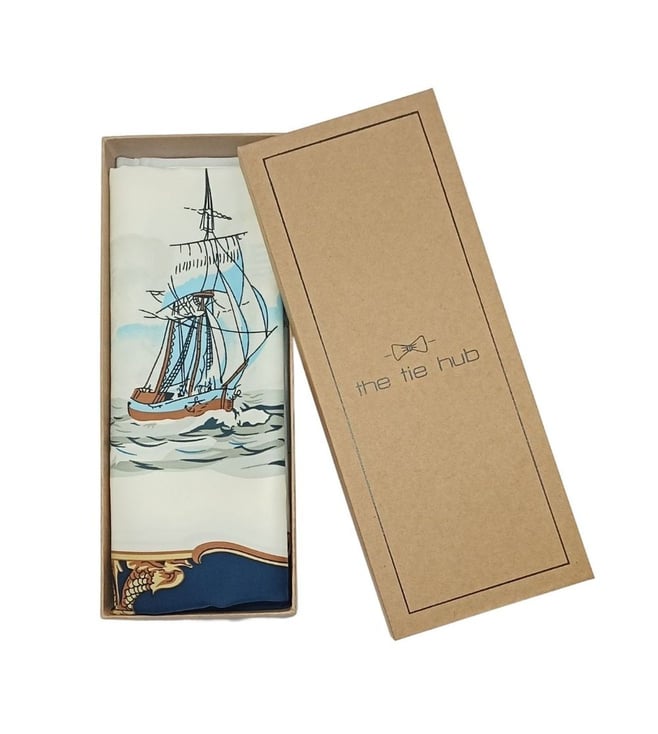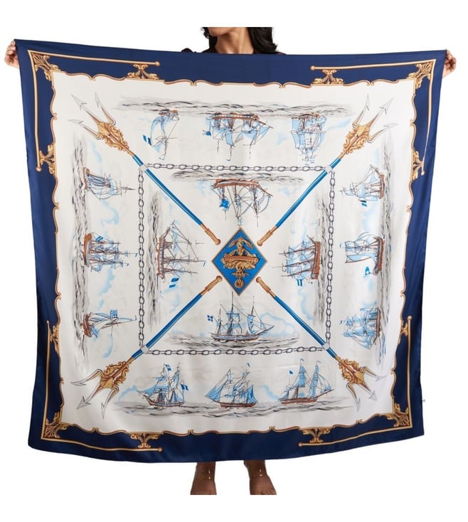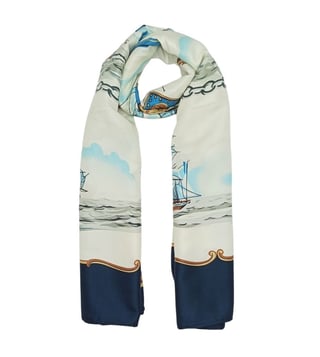 The Tie Hub White With Blue Selling Ship Printed Women Scarf
