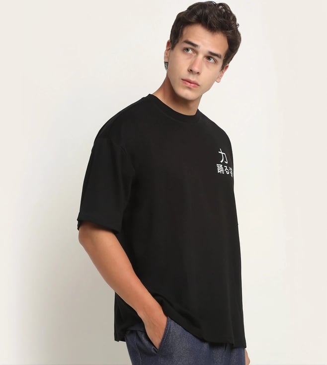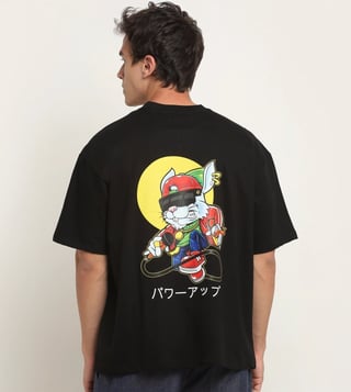 Theorem Black Happy Casuals Disco Bunny Front and Back Print Oversized T-Shirt