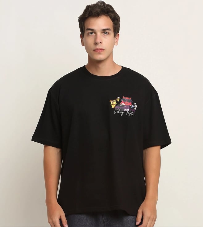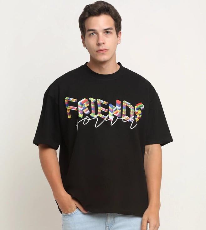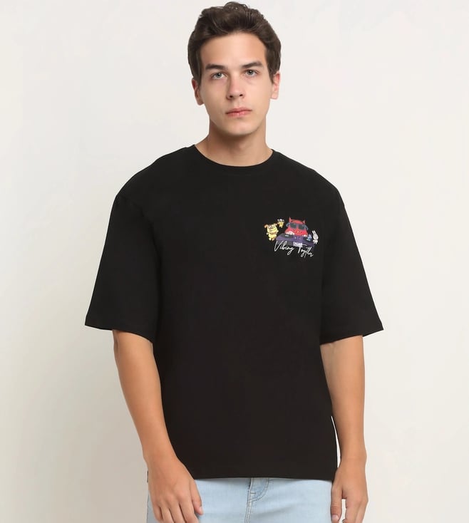 Black Happy Casuals Vibing Together Front and Back Print Oversized T-Shirt
