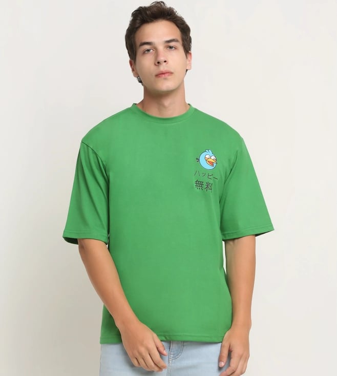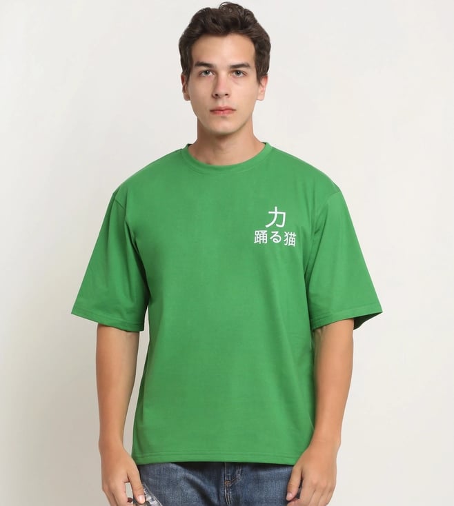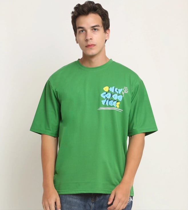 Green Happy Casuals Only Good Vibes Front and Back Print Oversized T-Shirt