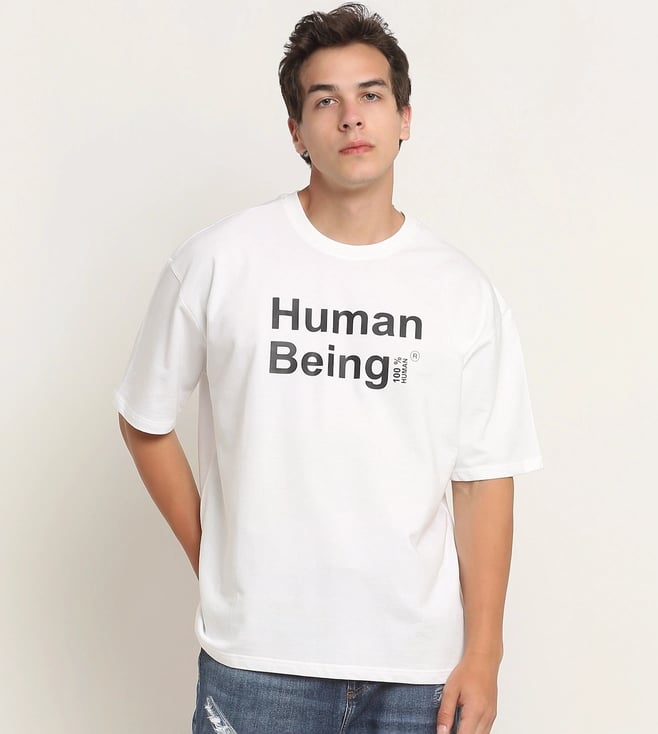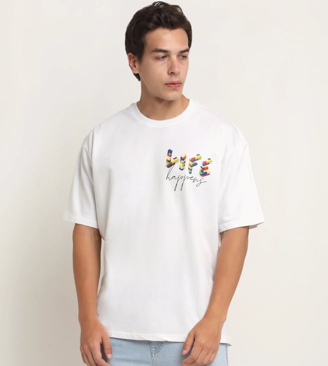 White Happy Casuals Life Happens Front and Back Print Oversized T-Shirt