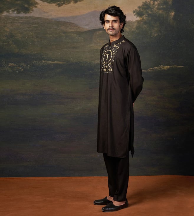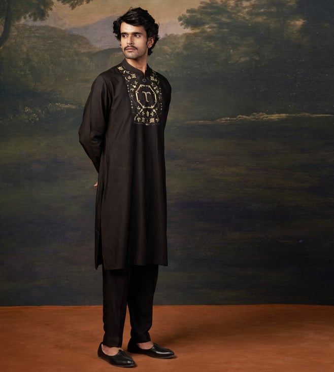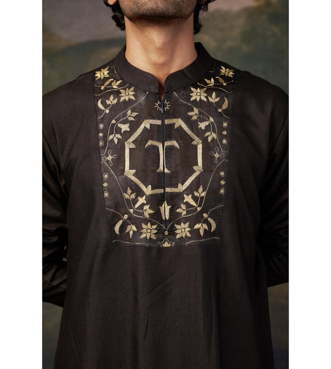 THETAA Black Gold Silk Relaxed Fit Embroidered Kurta Set