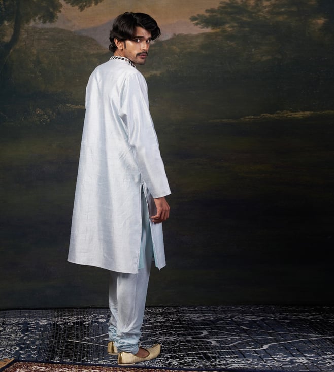 THETAA Blue White Silk Relaxed Fit Embroidered Kurta Set