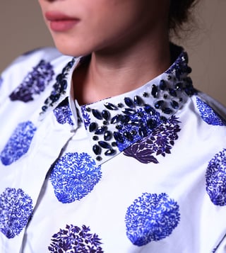 Chic boxy half-shirt with intricate stone hand embroidery, paired with stylish pleated palazzo pants. Comfortable and elegant for casual or semi-formal occasions.