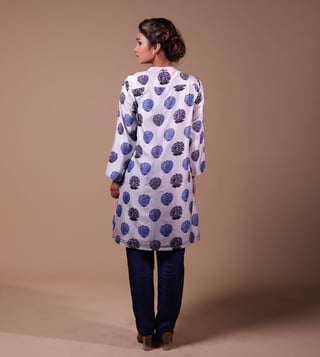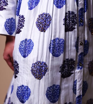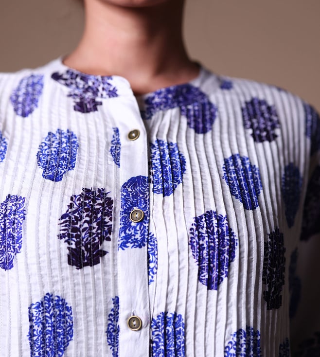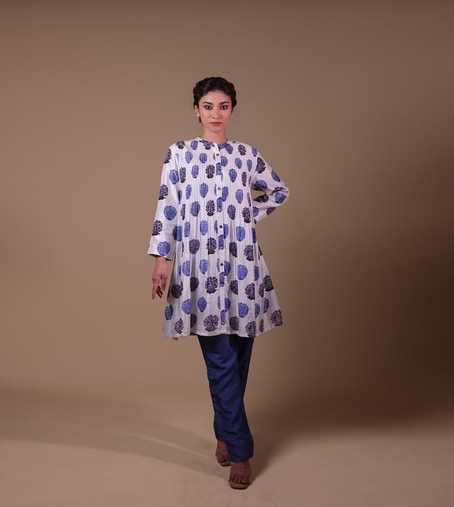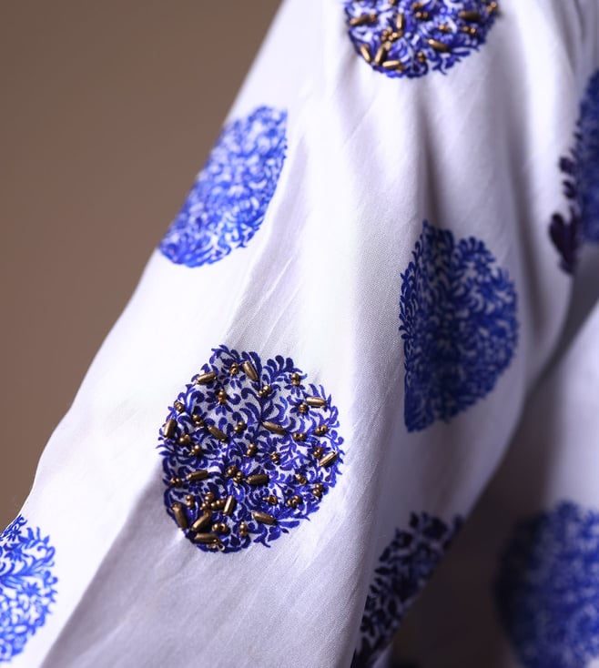 THETAA Blue & White Silk Relaxed Fit Floral Suits Set
