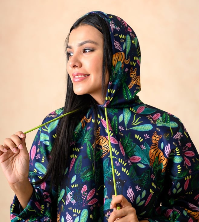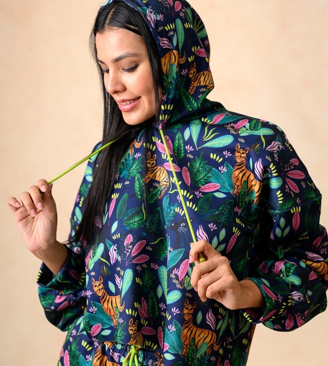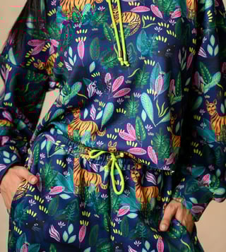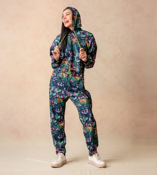 Embrace effortless style with this chic co-ord set. The scuba fabric hugs your curves for a flattering fit, while the cupro satin sleeves add a touch of luxury. The playful print on the sleeves adds a pop of personality, while the hood provides a cozy and stylish touch. Perfect for casual days or dressed up for a night out, this versatile set is a must-have for any fashion-forward woman.