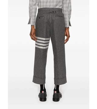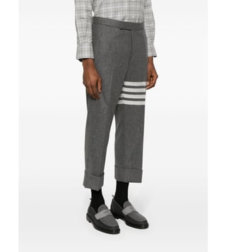 Elevate your style with the Thom Browne Dark Grey Striped Relaxed Fit trousers. Zip fly button closure belt loops pockets Crafted for durability and comfort. Products purchased from Darveys are supported exclusively by the warranty/exchange policies of Darveys and its partner boutiques. Brand owners and their channel partners are not responsible for exchange/warranty services for items purchased through Darveys.