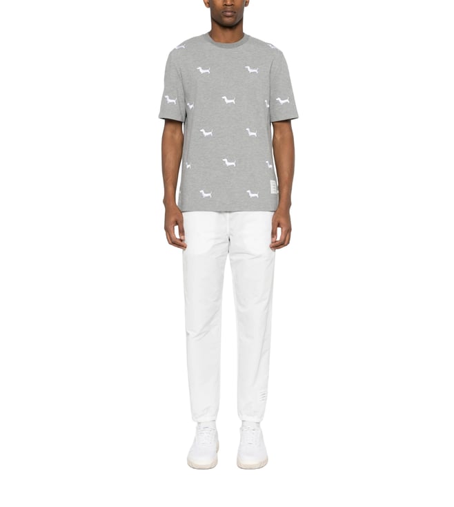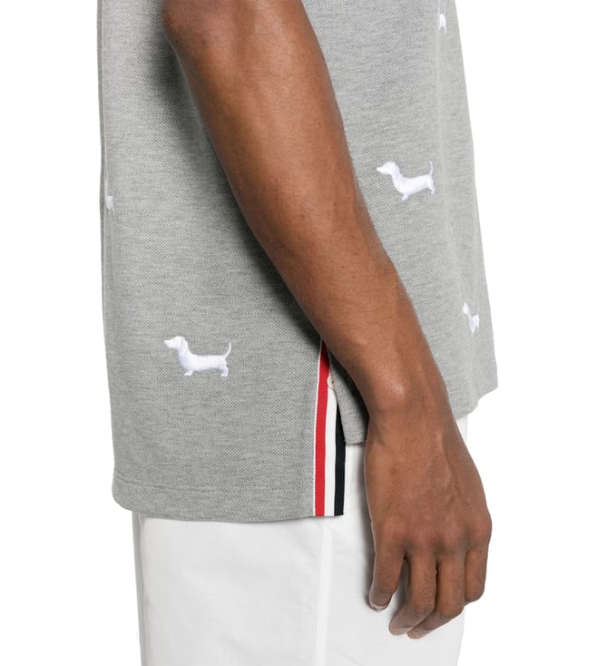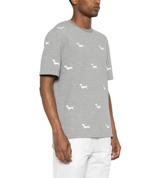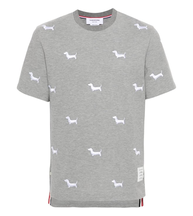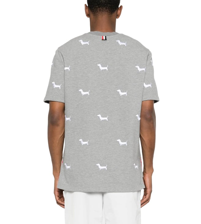 Elevate your style with the Thom Browne Grey Animal Print t-shirt. Dog embroidery crew neck short sleeves signature grosgrain side tabs logo tag highlow hem. Products purchased from Darveys are supported exclusively by the warranty/exchange policies of Darveys and its partner boutiques. Brand owners and their channel partners are not responsible for exchange/warranty services for items purchased through Darveys.