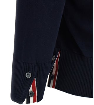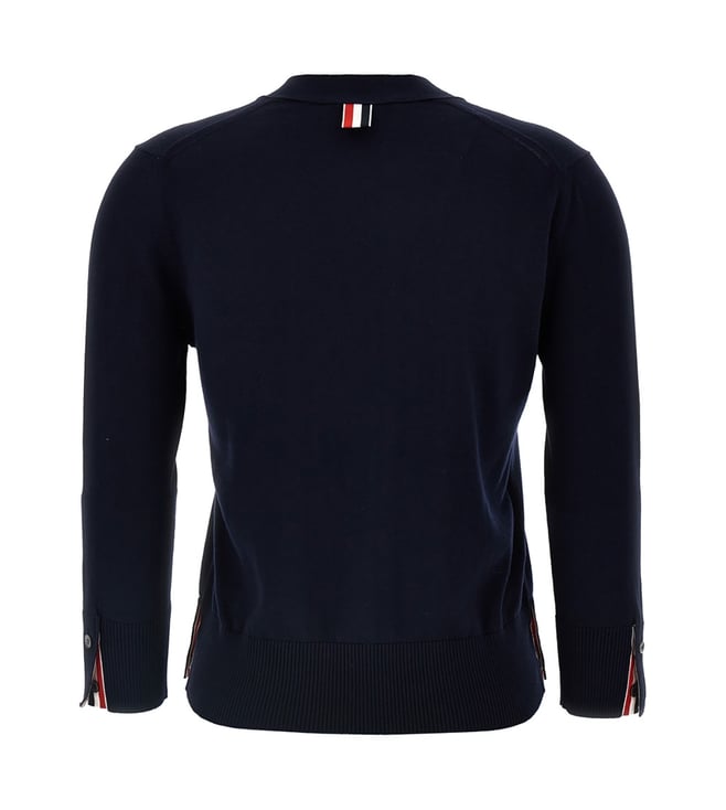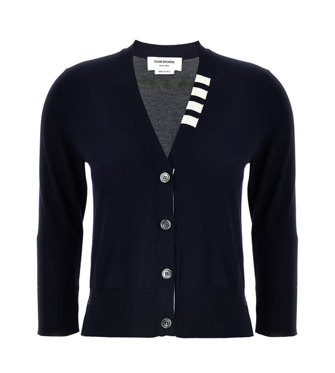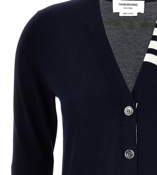 Dive into sophistication with the Thom Browne Navy Blue 4Bar Cardigan, a masterpiece of elegance and style. Crafted from 100% cotton, this cardigan offers a luxurious feel and breathability. Its rich navy hue is beautifully complemented by the iconic 4Bar pattern, adding a touch of modern flair. Designed for the discerning woman, it features a sleek closure that ensures a perfect fit. This cardigan is not just a garment it's a statement of timeless fashion and refined taste.