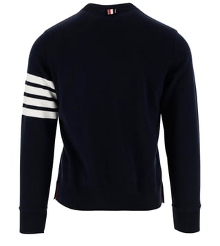 Elevate your style with the Thom Browne Navy Striped Regular Fit Sweatshirt. Sweatshirt made of cotton x000D crew neck x000D long sleeves x000D ribbed edges x000D side buttons x000D bands detail on the sleeve x000D straight hem x000D regular fit x000D navy x000D made in japan x000D composition: cotton the model is wearing size 3. Model measurements: height: 185 cm chest: 94 cm waist: 75 cm hips: 93 cm shoulder: 48 cm.