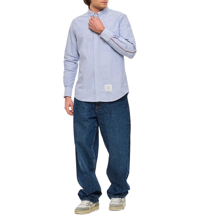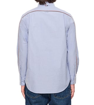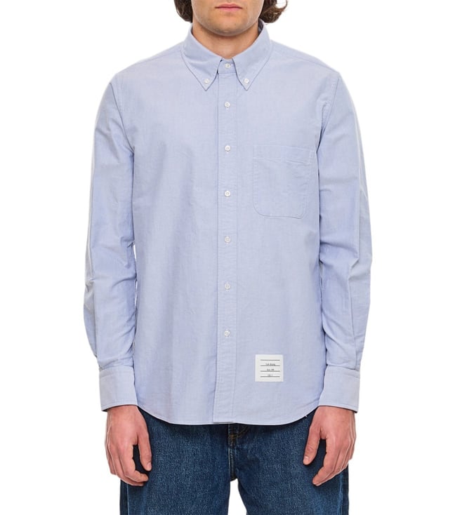 Elevate your style with the Thom Browne Sky Blue shirt. Long sleeve cotton shirt. Button front closure. Pointed collar. Color: light blue. Products purchased from Darveys are supported exclusively by the warranty/exchange policies of Darveys and its partner boutiques. Brand owners and their channel partners are not responsible for exchange/warranty services for items purchased through Darveys.