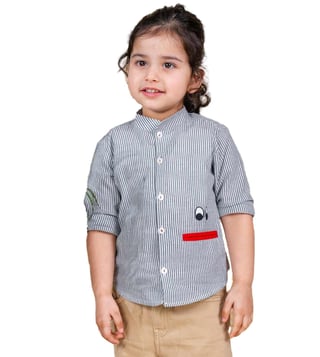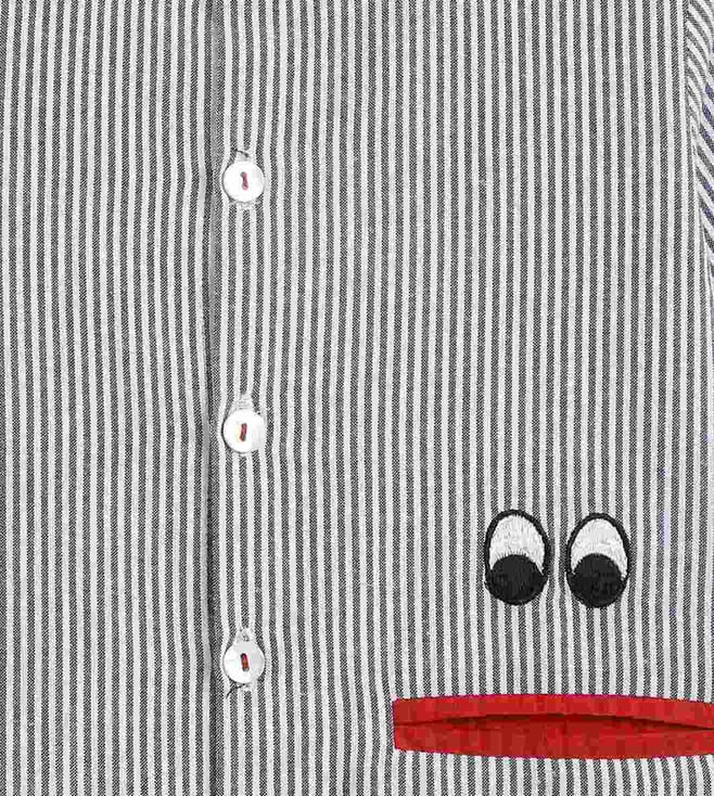 Crafted from 100 percent cotton, this shirt guarantees comfort all day long. The 'Googly Eye' design is charming, which your little boy will love. Perfect for both casual and festive occasions, it's equally elegant to pair with shorts, jeans and even mundus. Disclaimer: All other items in the image are only for display purposes and will not be a part of the delivery content. Product colour may slightly vary due to photographic lighting sources. Country of Origin - India.