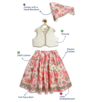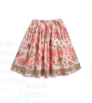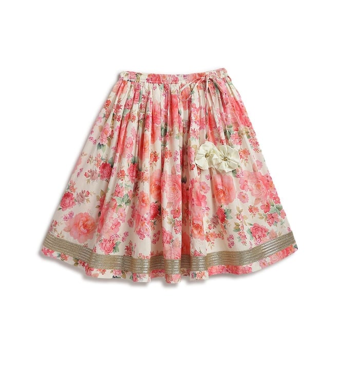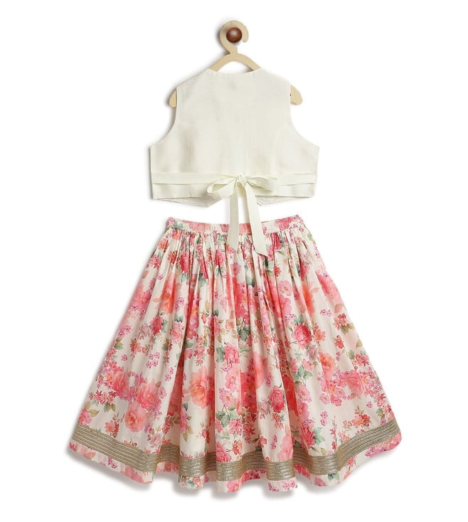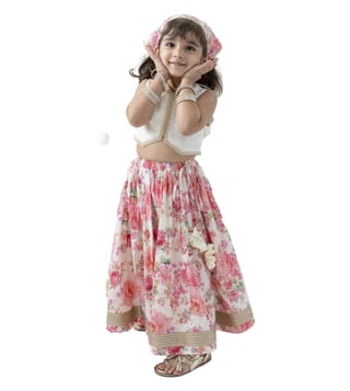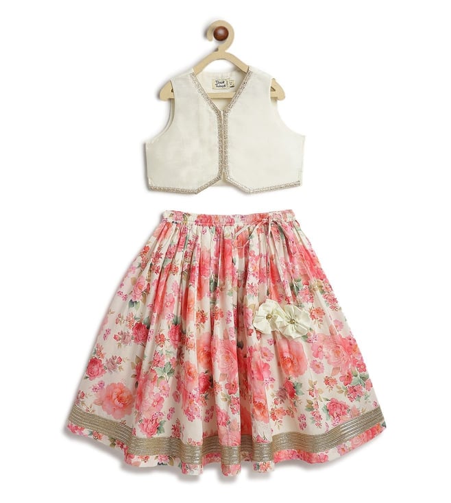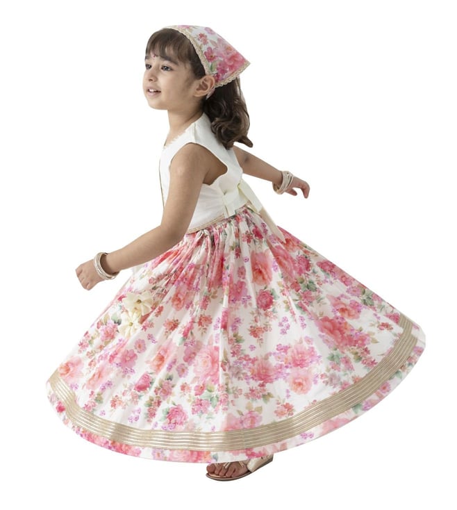 Tiber Taber Girl Cream Floral Printed Regular Fit Lehenga Set