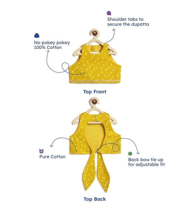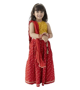 Elevate your little girls wardrobe with our Tiber Taber Girl Yellow Bandhani Printed Regular Lehenga Set. This vibrant ensemble features a traditional bandhani print that exudes elegance and charm. Crafted from high-quality fabric, the lehenga set offers a comfortable fit for all-day wear. Perfect for festive occasions and celebrations, this set will make your little one stand out in style. Add a touch of ethnic flair to her look with this beautifully crafted outfit that is sure to make her feel like a princess.