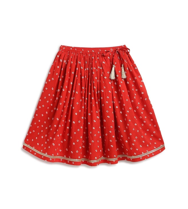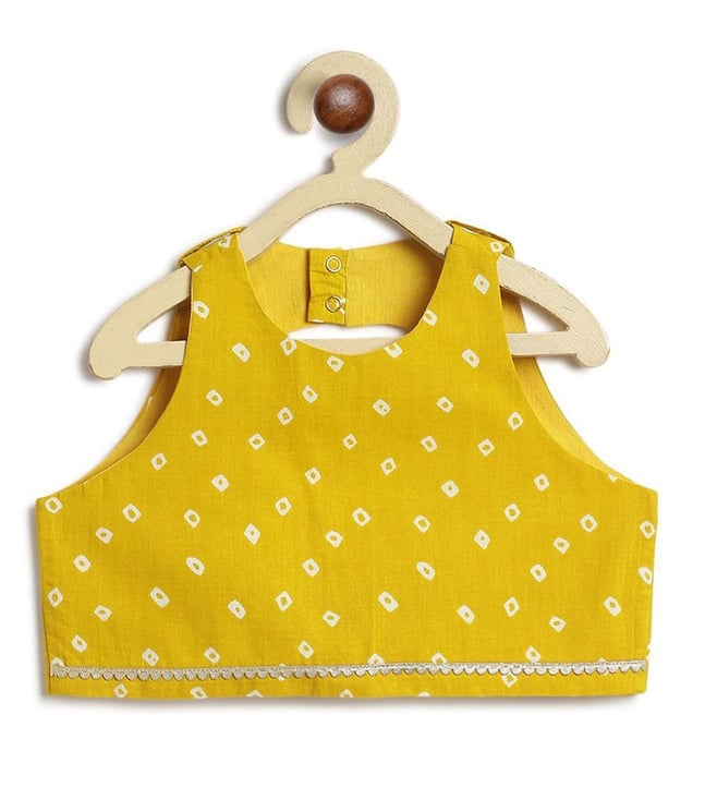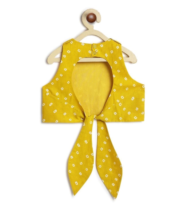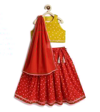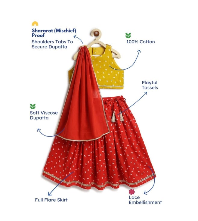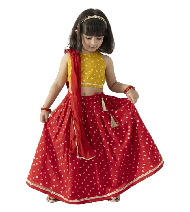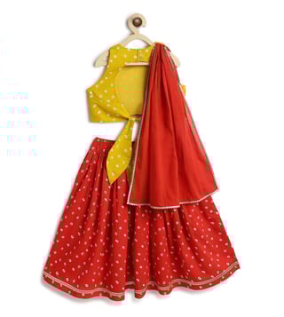 Tiber Taber Girl Yellow Bandhani Printed Regular Fit Lehenga Set