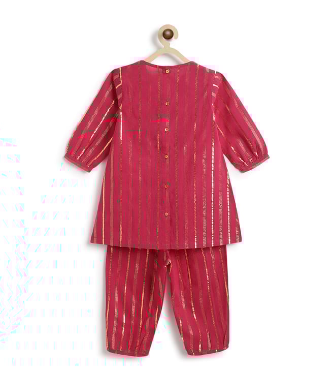 Tiber Taber Pink Cotton Lurex Regular Fit Striped Suit Set