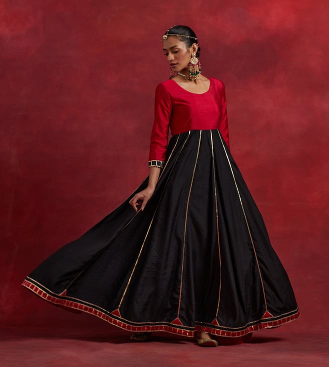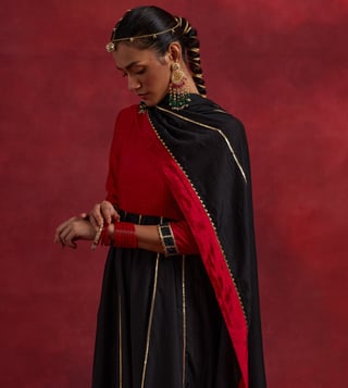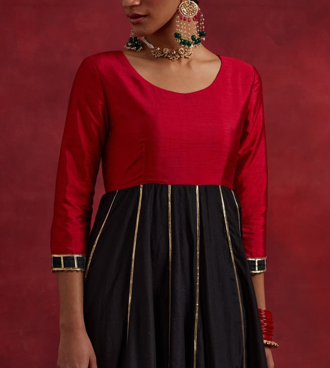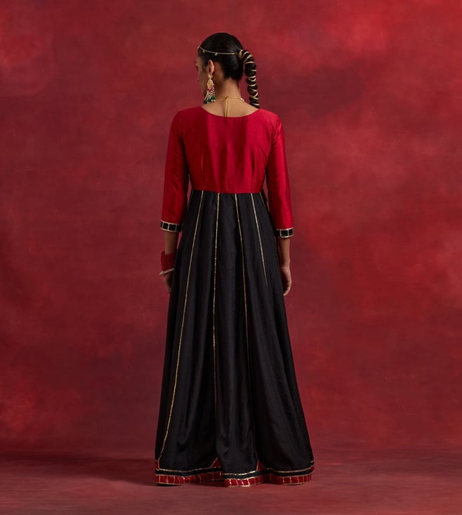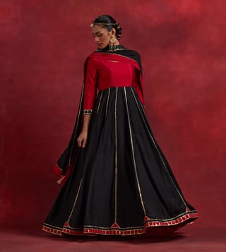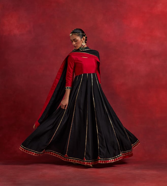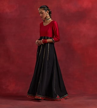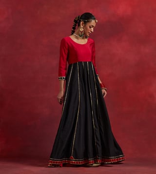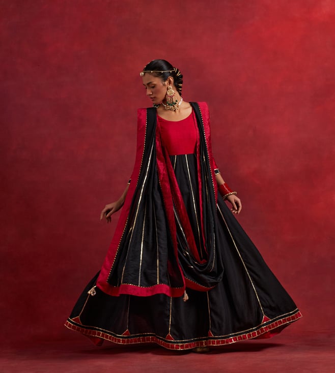 The Indian CauseTIC Red Black Raw Silk and Chand eri Ghoomar Kurta Set (Set of 2)