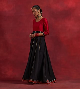 The Indian CauseTIC Red Black Raw Silk and Chand eri Ghoomar Kurta