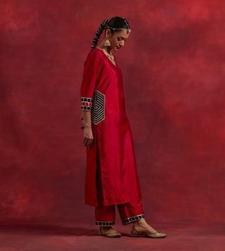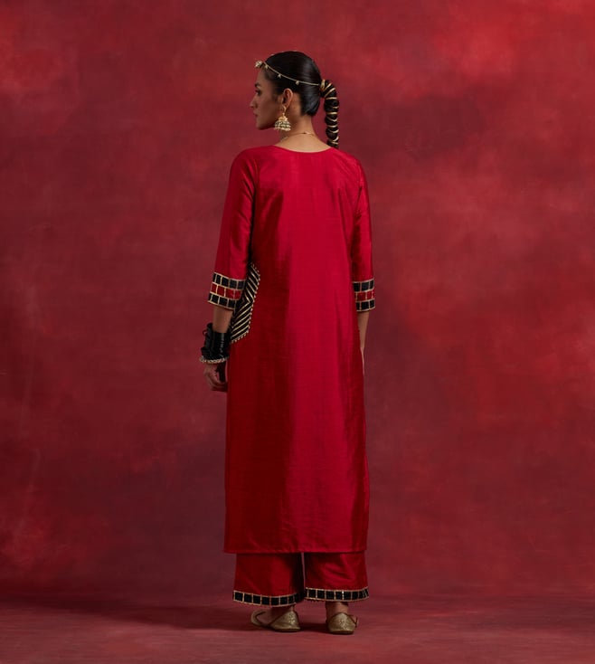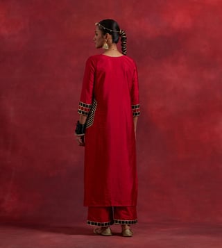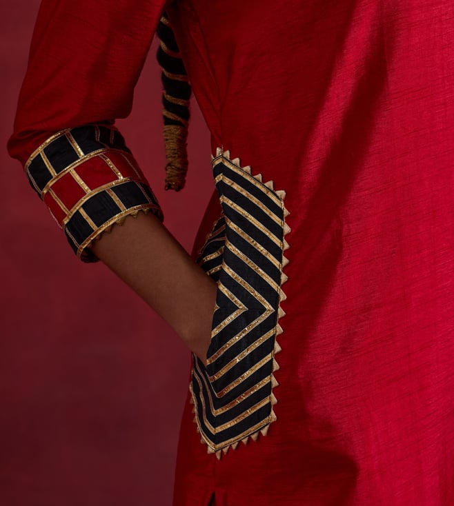 The Indian CauseTIC Red Black Raw Silk Mira Kurta Set (Set of 2)
