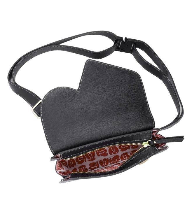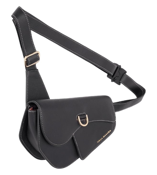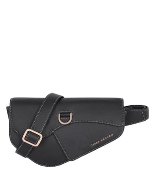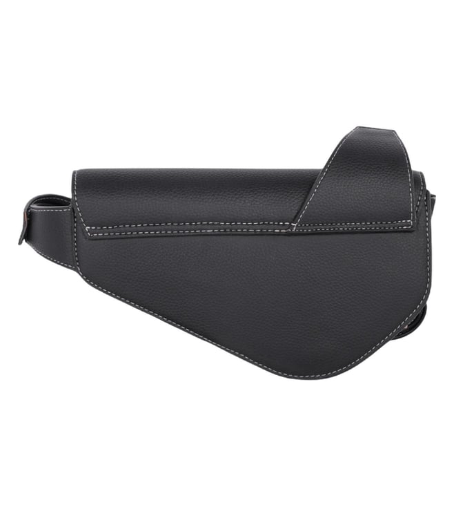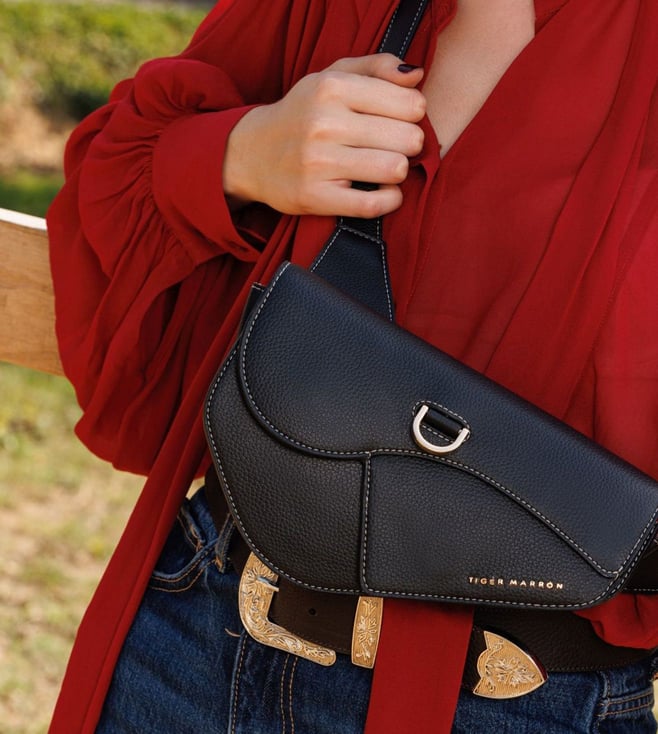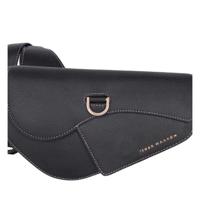 TIGER MARRON Black Mustang Textured Small Leather Saddle Fanny Bag