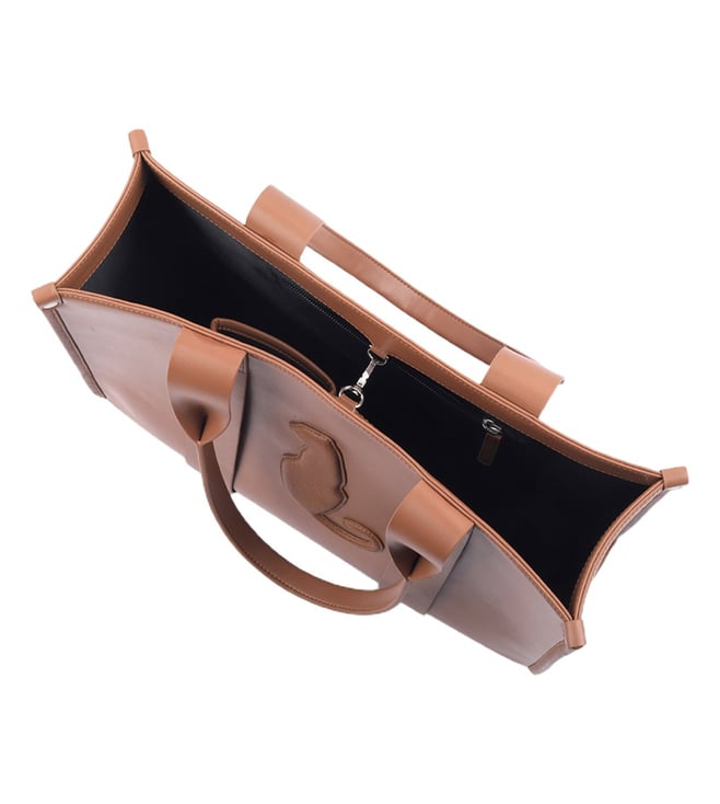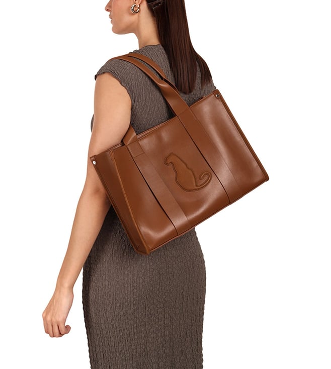 This Large Chocolate Forest Mama Tote is a part of the trio Tiger Family tote collection. It is a large sized tote made of vegan leather. Its efficient to carry essentials like Phone, tablet, Laptop, diary, book, charger, etc. It can be styled both as a holiday tote or a shoulder handbag.