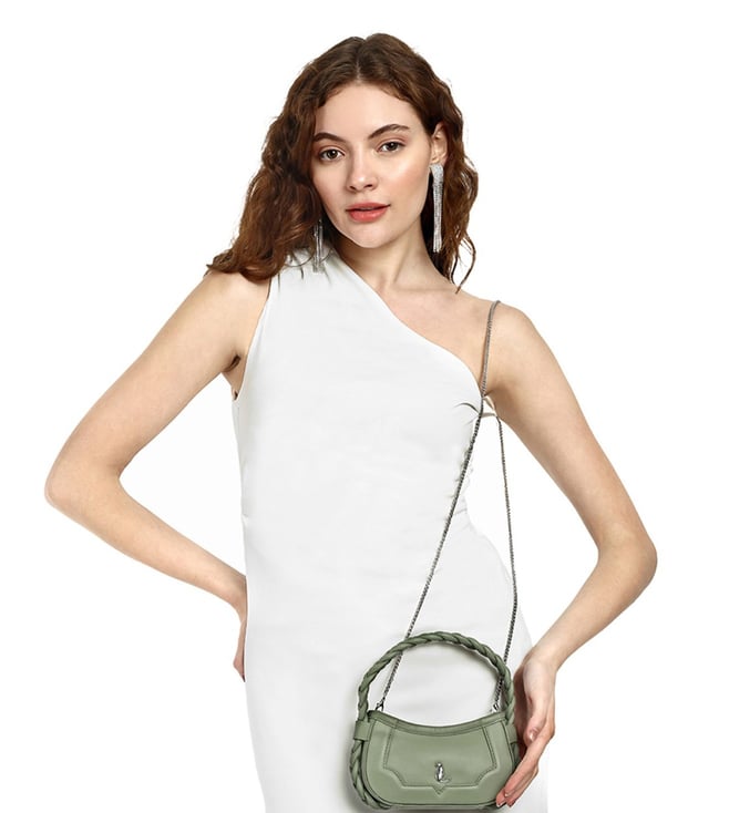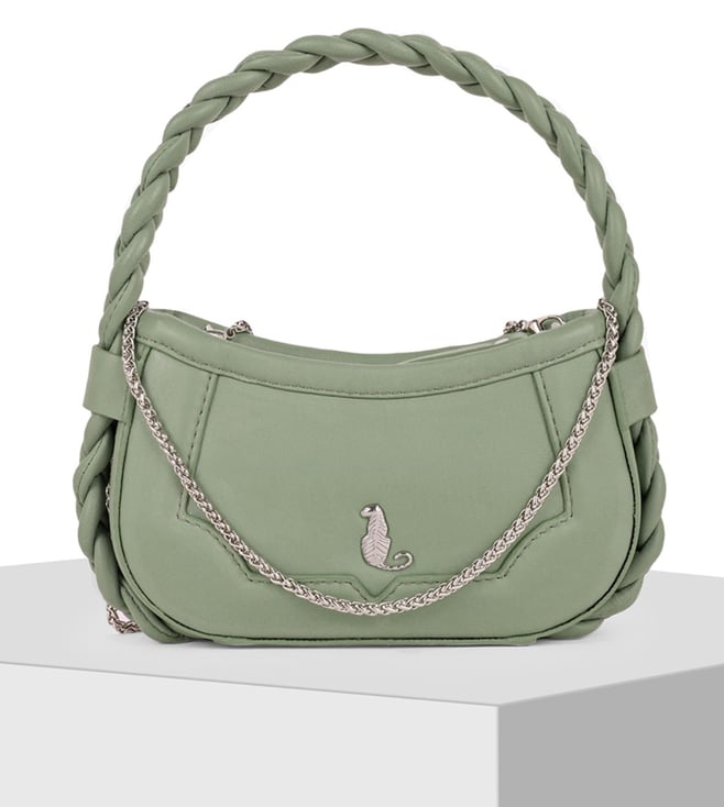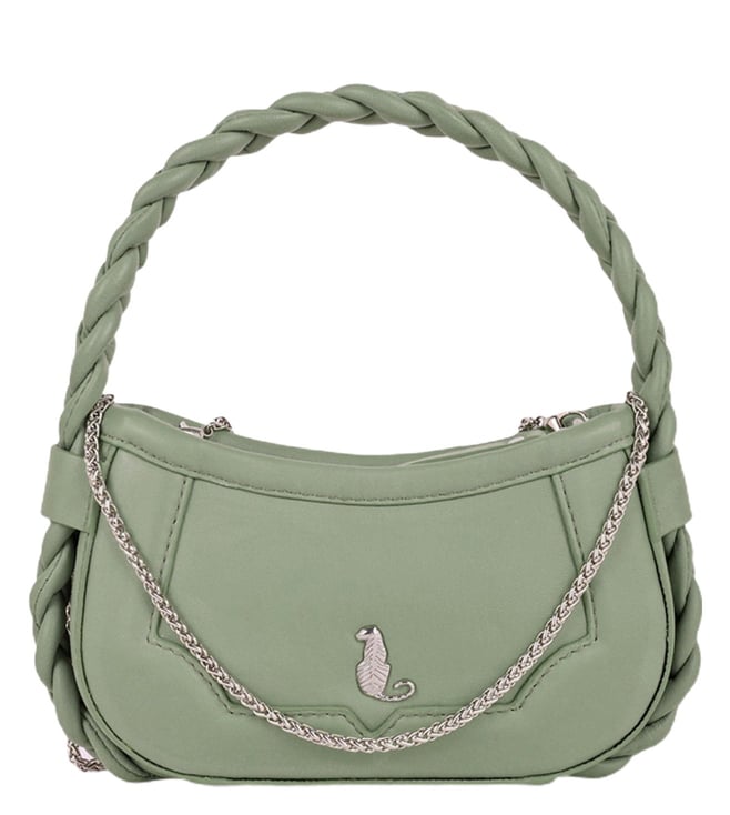 TIGER MARRON Green Caviar Leather Mini Hobo Bag