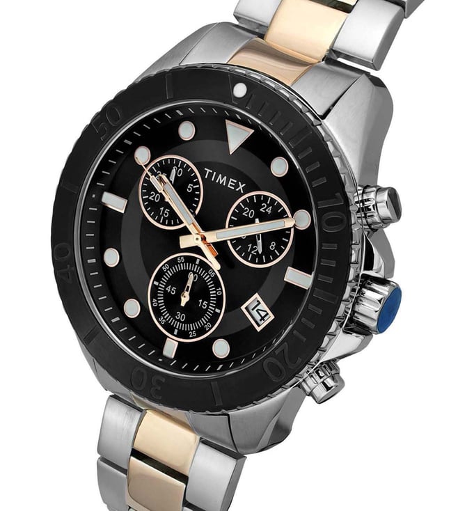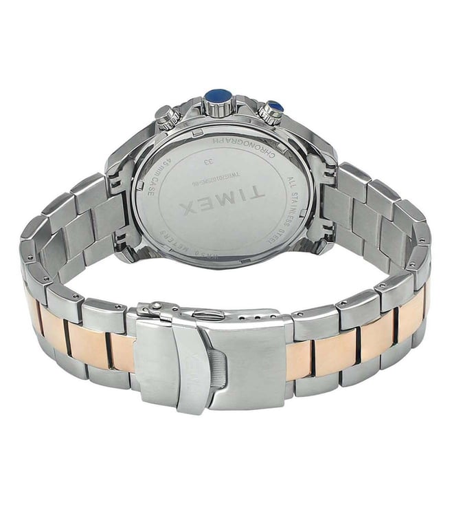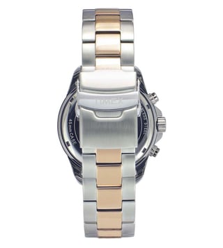 Exhibiting a unique charm, this analog watch by Timex is a must-have for fashion-forward men. Functional on a quartz movement and protected by a mineral glass, the round dial is housed in a 47 mm case. It displays chronograph functionality and a crown for time adjustment. The strap is crafted with care using stainless steel that gives a good finish.