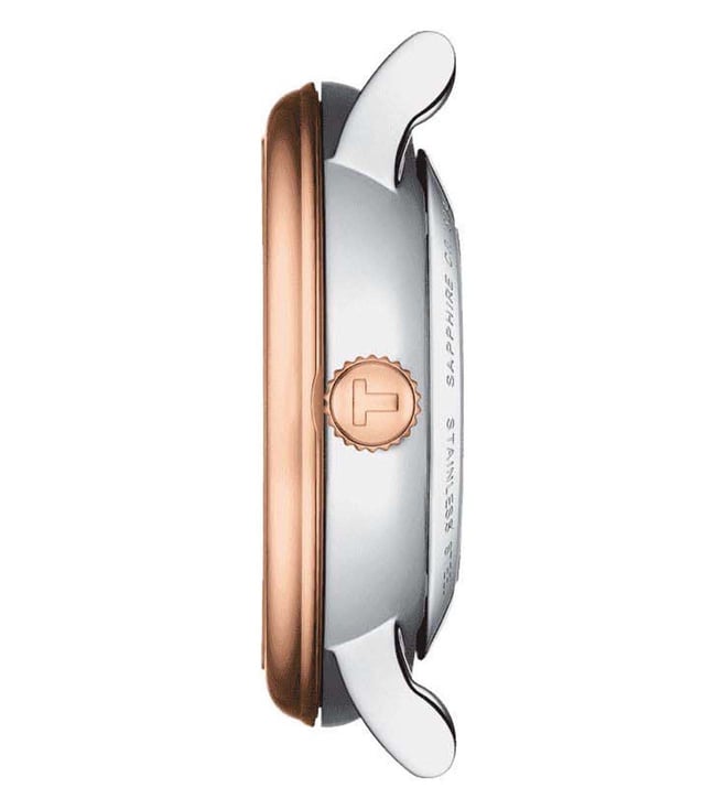 An eye catching round dial makes this women's watch from the T-Classic collection by Tissot a great inclusion to your watch collection. Secured by a sapphire glass, the dial is housed in a 30 mm case. It exhibits plain three hands and a crown for time adjustment. The strap is crafted with care using stainless steel that gives a good finish.