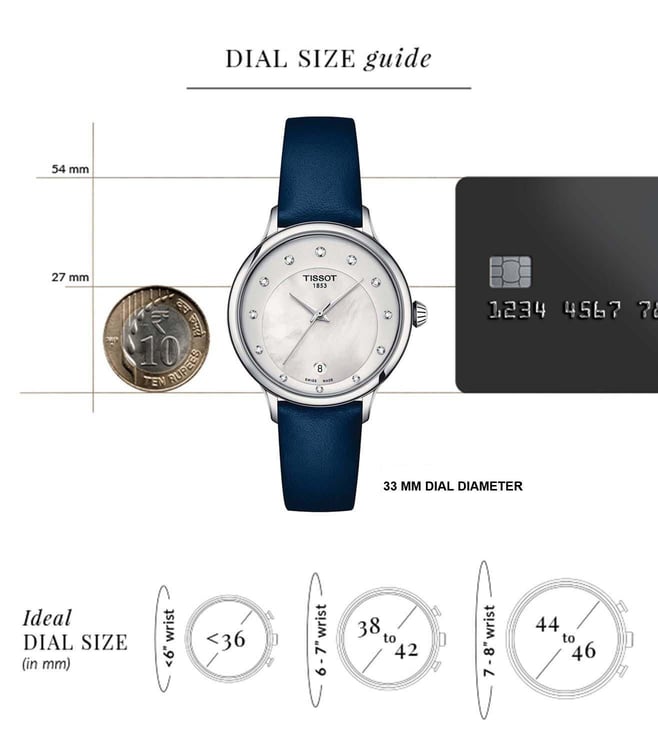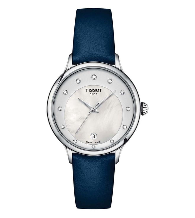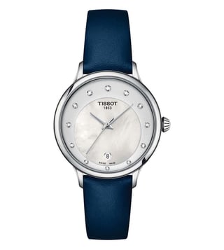 Carry great technology wrapped around your wrist with this stylish women's watch with an additional strap from the T-Lady collection by Tissot. Functional on a quartz EOL movement and protected by a domed scratch-resistant sapphire crystal with antireflective coating, the round dial is housed in a 33.17 mm case. It displays plain three hands and a crown for time adjustment. The strap is crafted with care using leather that gives a good finish.