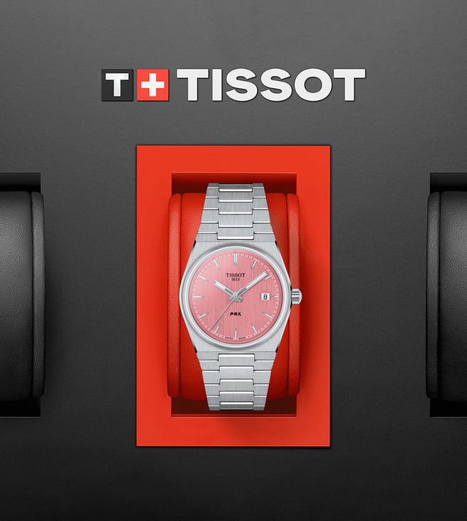 Look modish by donning this unisex's analog watch from the collection by TISSOT. The pink tonneau dial is protected by a sapphire glass. It features a crown for time adjustment. The stainless steel strap comes in a grey hue that further elevates the look of the timekeeper. Besides, it is completed with a push button clasp clasp to ensure a secure fit on the wrist.