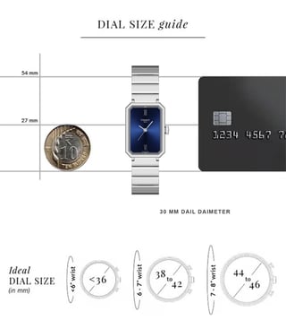 This Swiss Quartz watch features a 30.0mm rectangular dial with Sapphire Crystal and a stainless steel strap. Its sleek design and reliable movement make it an elegant choice for everyday wear.