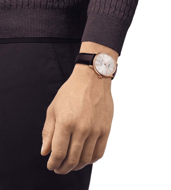 Effortlessly combining style and functionality, this elegant watch from the Tissot can be a perfect pick. It features plain 3-hand functionality to keep you on time. This watch is water resistant to 50 m which keeps you free of worries while washing hands or during rain.